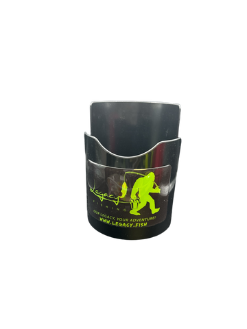 A cup holder perfect for your favorite jar of bait or beverage. use it on your boat, your tool box, or even customize your Legacy fishing pole holder!