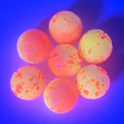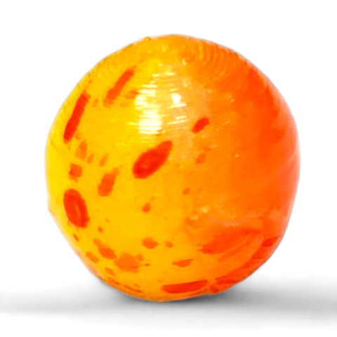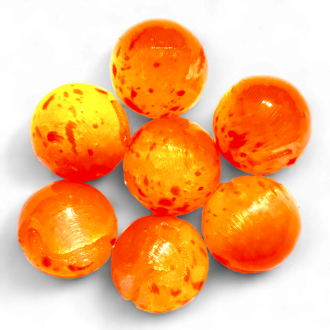 This is a two-tone color with yellow and peach. The yellow side also has peach splatter.
