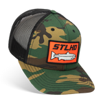 The STLHD Camo trucker is just as tough as the original black and white but tailored for the all-around outdoorsman or woman. A classic camo pattern and snap enclosure make this hat perfect for your fishing hat collection.